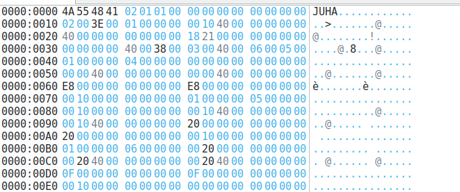 ELF file with signature changed to JUHA