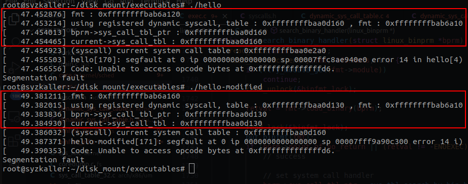 printk("using registered dynamic syscall, table : 0x%lx , fmt : 0x%lx\n" , (unsigned long)bprm->sys_call_tbl_ptr , (unsigned long)fmt);