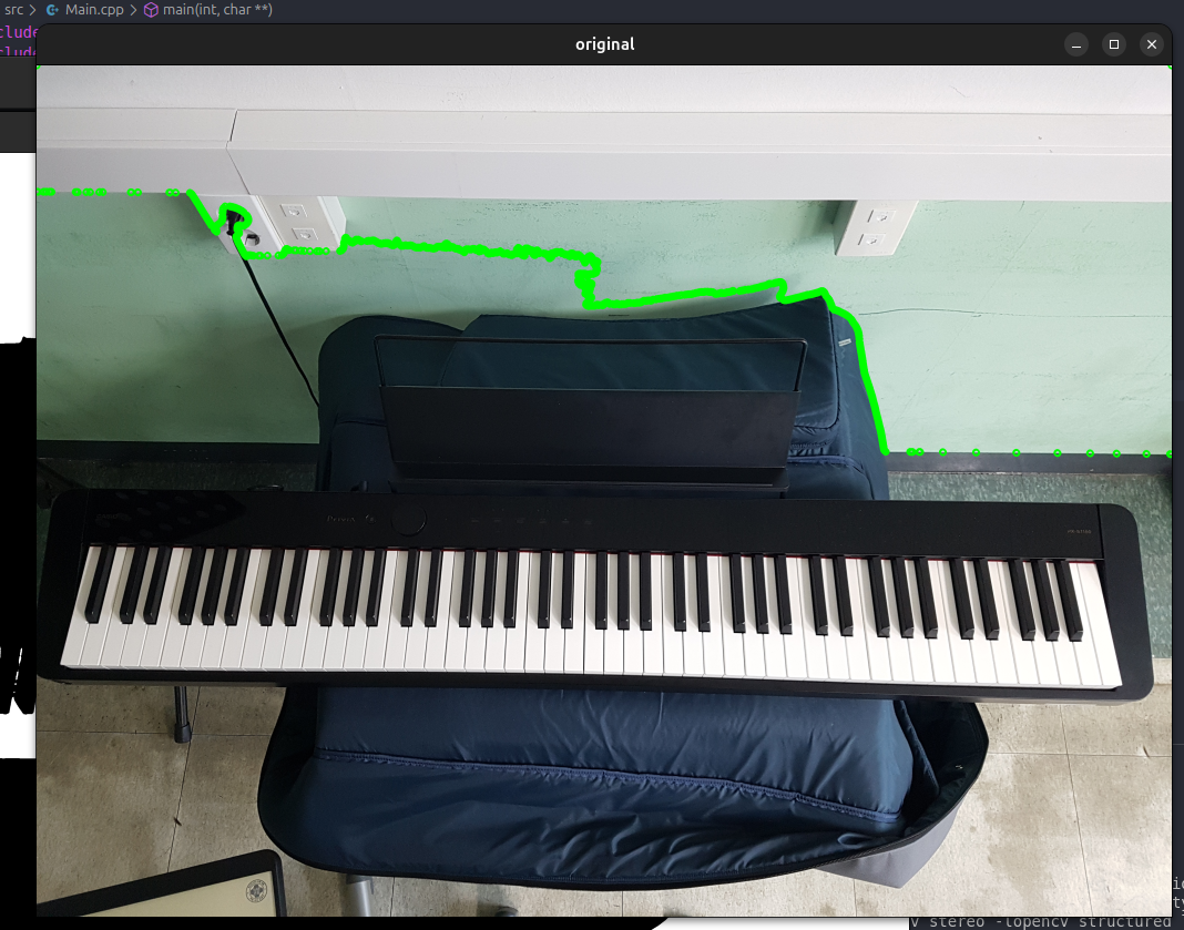 As you can see on the image, the system detects the wall as the longest contour and thinks it is the piano. This approach will definitely not going to make the recongition accurate.