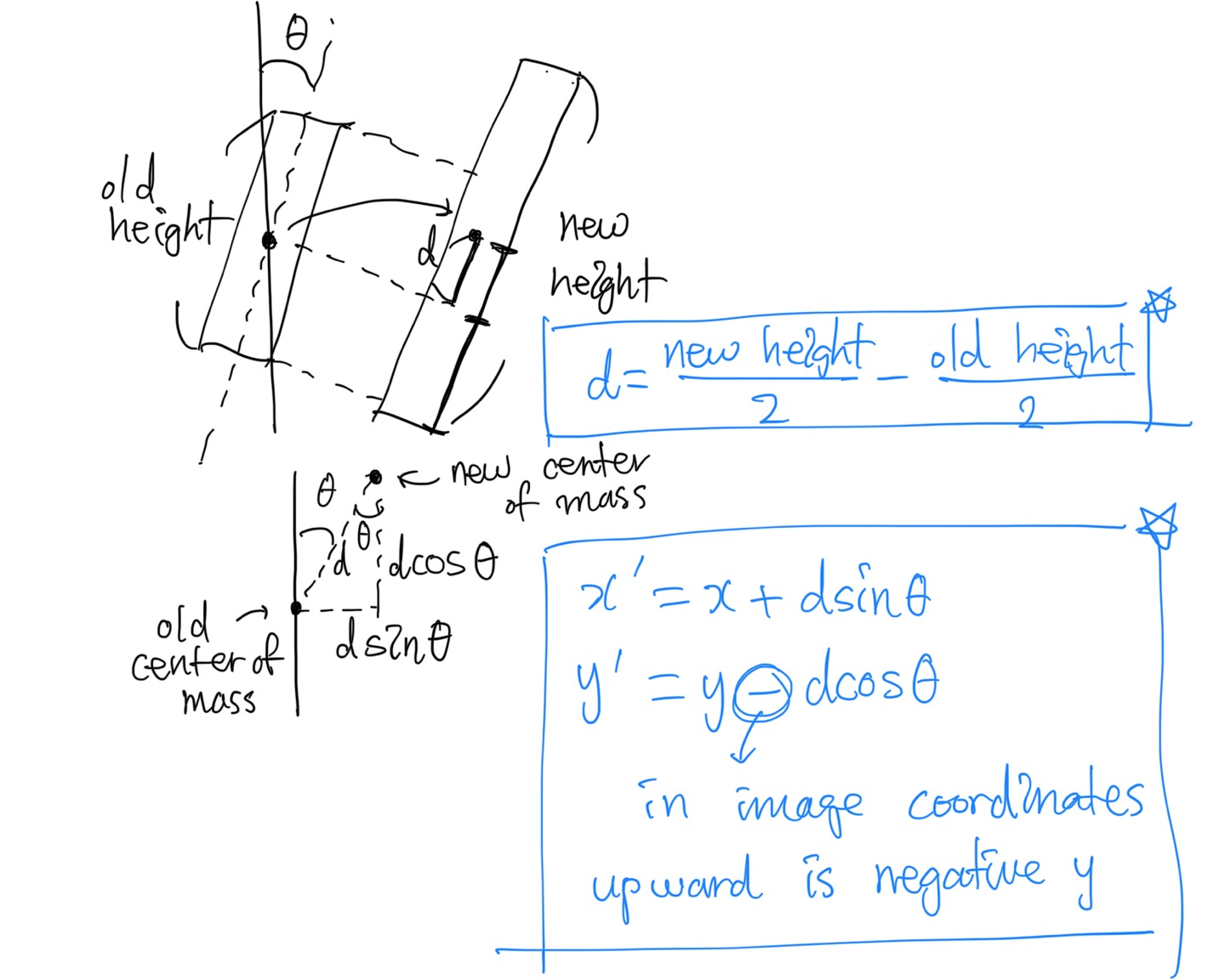 But simply changing the value of the height does not fix this problem. Because the center of mass does not change, the rectangle grows in both sides, not only one side as we want. So, we need to change the center of mass also to grow the rectangle in one direction.
