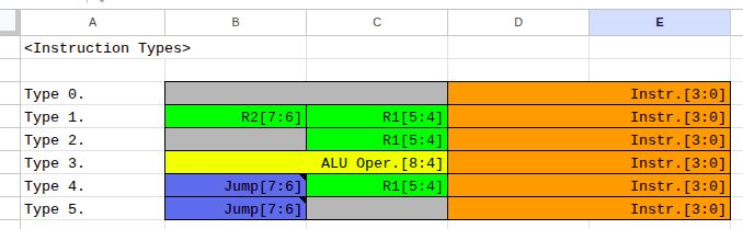 Previously, the size of the instruction was fixed to 4-bits, which limits the number of instruction to only 16. (The instruction type is saved in the EEPROM. After fetching the instruction type from the instruction number, some logic operations separate out the arguments and instruction(R1, R2, ALU Operations, Jump Conditions, ...) from the full instruction.)