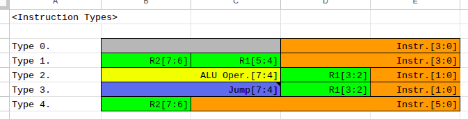 From the instruction #0 to #3, the system decodes the instruction as type 2 or 3, and from instruction #4 to #15, the system decodes it as type 0 or 1, and so on. This way, we can essentially use the "unused" bits of the instruction as the arguments for the instruction.