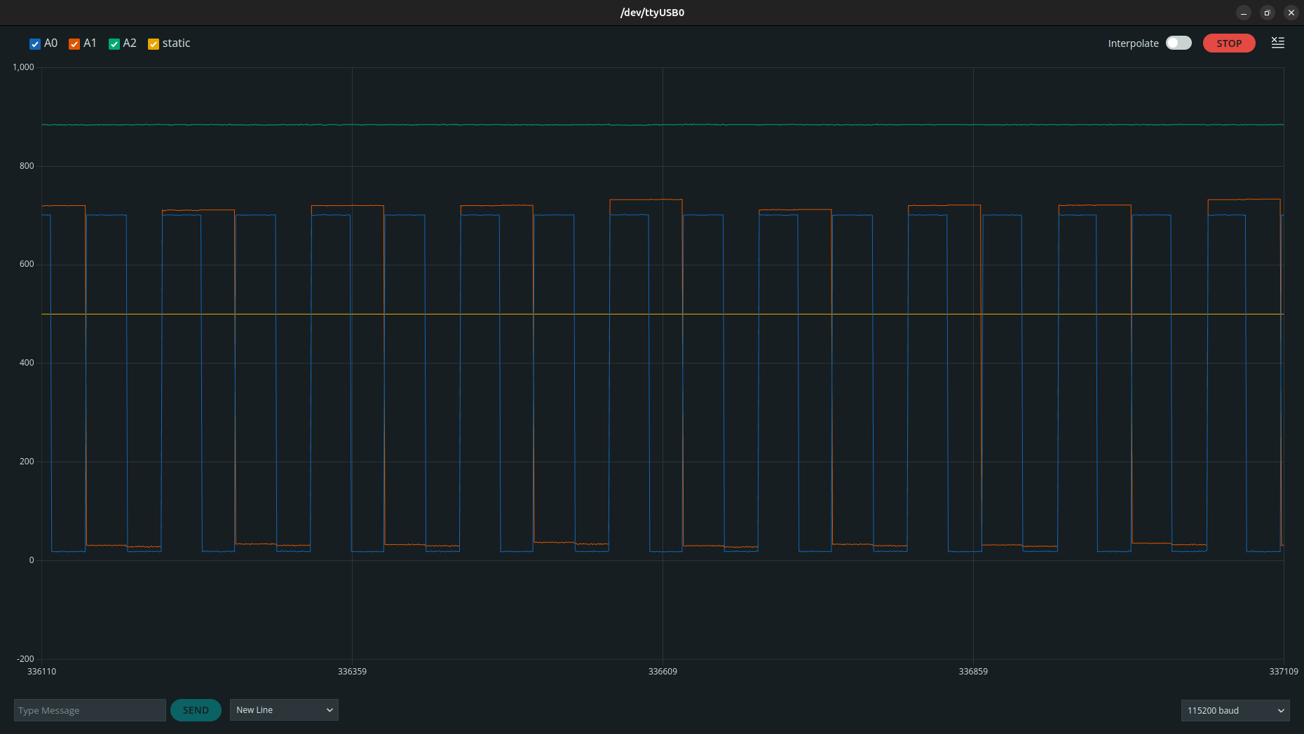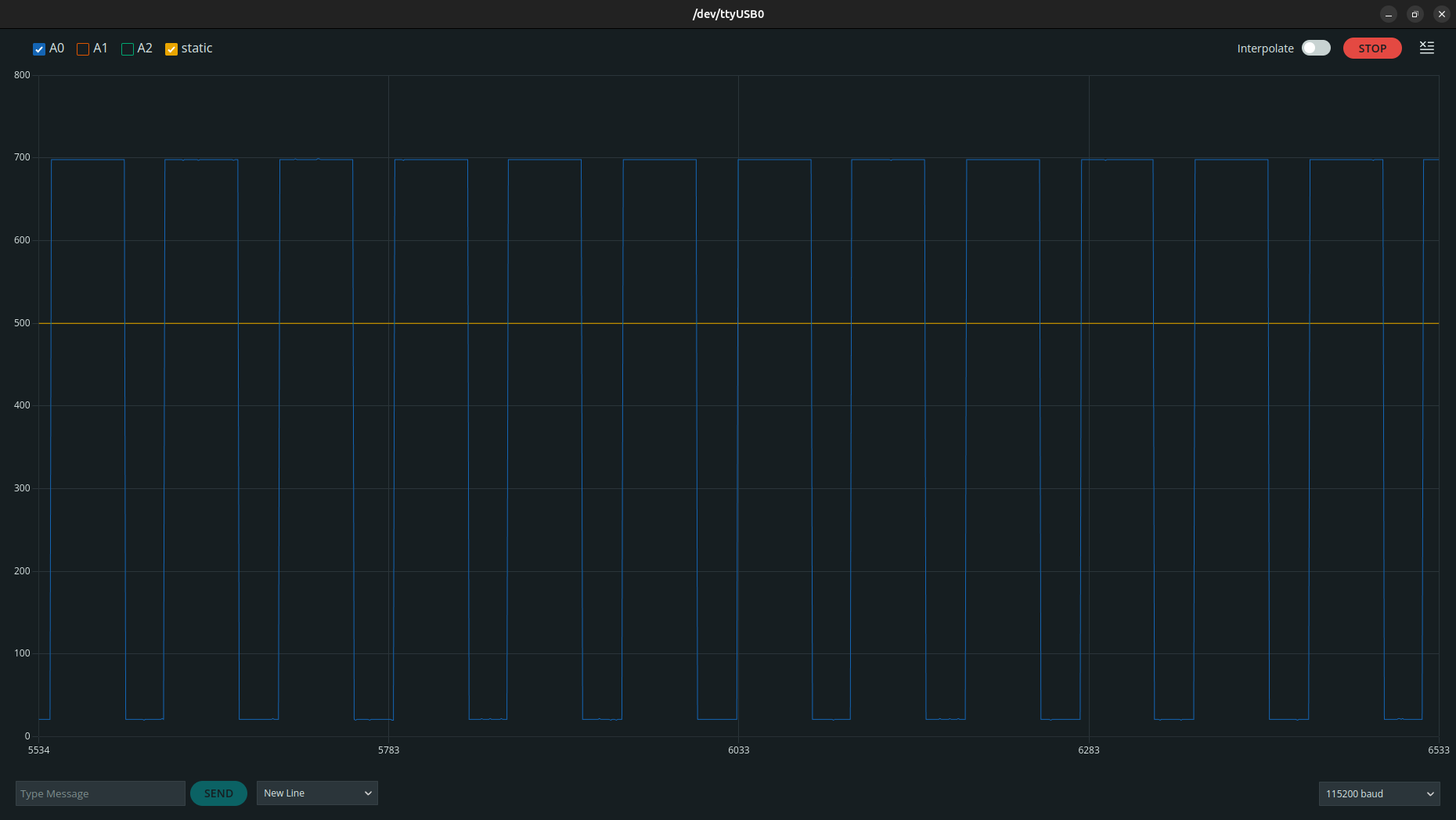 Here, the baudrate of the serial determines the speed in which the signal is being plotted(which totally makes sense if you consider it.) If you want your monitoring to be a little bit slower, you can do that by just lowering the baudrate.